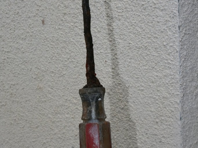 So after my friend Tina’s husband, (a contractor), took the wall down, he couldn’t get to the blockage. So his team realized there was a connector on the sink pipe from when plumber #5 punched our our wall and punctured the pipe a la 2008. By going through the connector and using magnets, Marc started trying to get it out. 15 minutes, a whole lotta sweat and a pouty quivering lip later, MARC GOT IT!!!!!!!! Unbelieveable. Truly. Unbelievable. It was a miracle-a real miracle and answered prayer that involved a rusty ole: